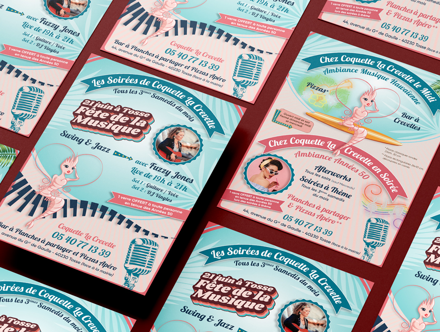 Le flyer est destiné à promouvoir un événement ou des commerces locaux.